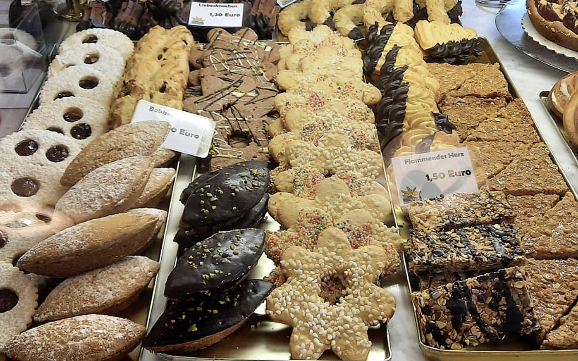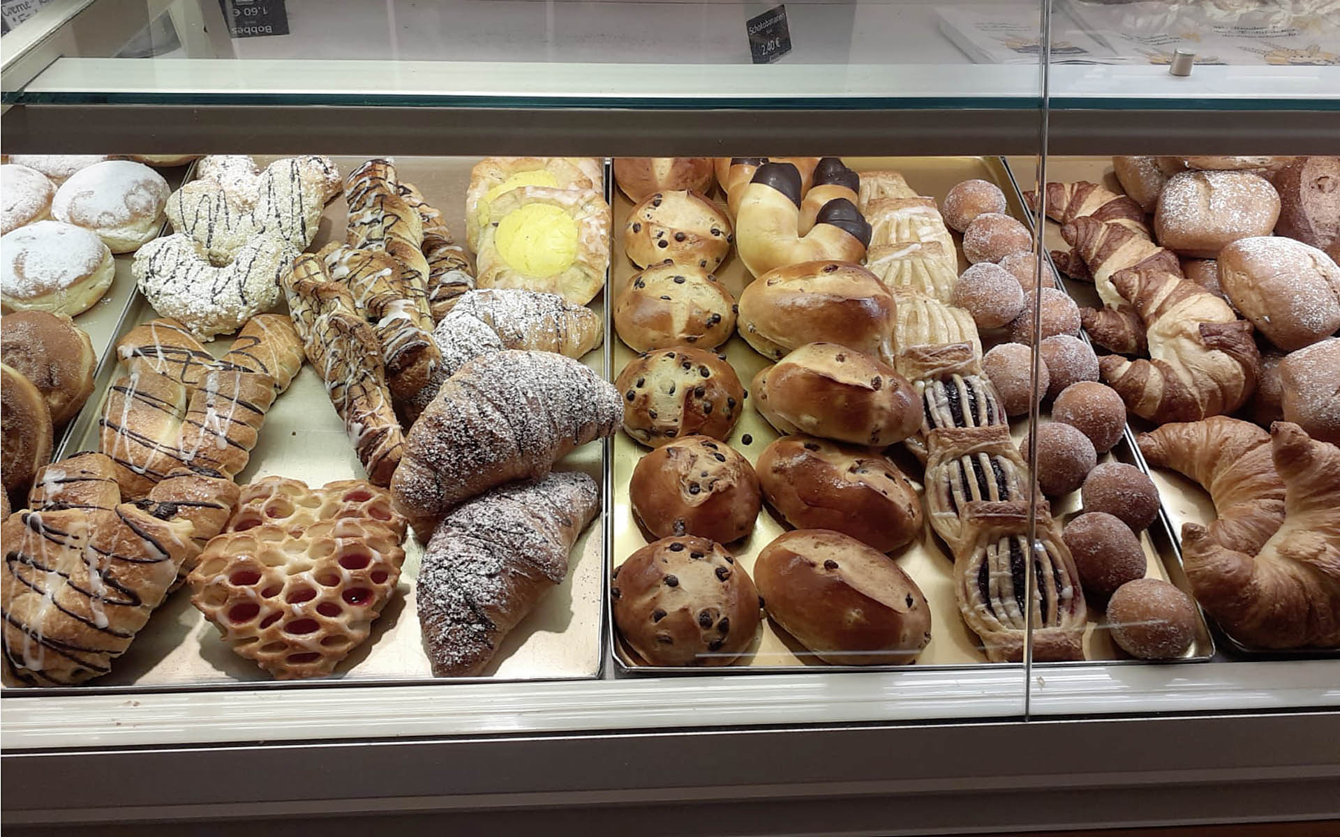 Egal ob zum Frühstück, zur Kaffeepause oder als Stärkung für unterwegs – unsere köstlichen Kaffeeteilchen versüßen Ihnen den Tag. Wir haben eine große Auswahl: Croissants, Nussschnecken, Plunder, Berliner, Nussecken, Rosinenbrötchen, Nussschleifen, Muffins, Hörnchen, Donuts u.v.m.